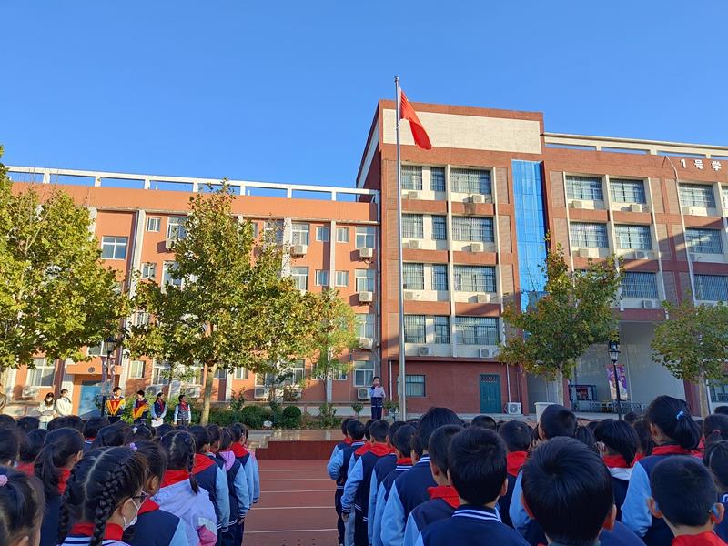 伴随着嘹亮的国歌声,鲜艳的五星红旗冉冉升起,全校师生肃然站立,屏息凝神,面向国旗行注目礼,少先队员行队礼。