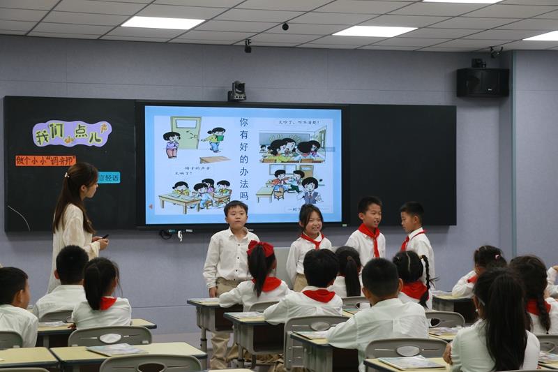 活动首先由宏康校区李梦瑶老师分享二年级上册《我们小点儿声》一课。围绕教学目标,李老师以学生情感体验为主线,通过“我是小小调音师”“轻言轻语”等教学环节,由浅入深,引导学生懂得在不同场所说话要小点儿声,让学生养成公共场所保持安静的意识。