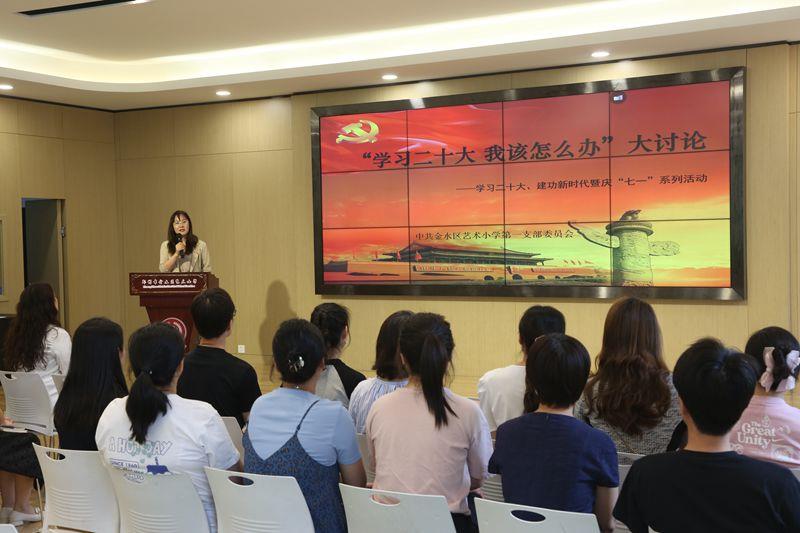 第一支部书记杨丽丽以《学习贯彻党的二十大精神 以更高质量办好人民满意的教育》为题,从“学习党的二十大报告”“实施科教兴国战略,强化现代化建设人才支撑”两个方面带领党员教师们充分领悟学习宣传贯彻党的二十大精神的重要意义。
