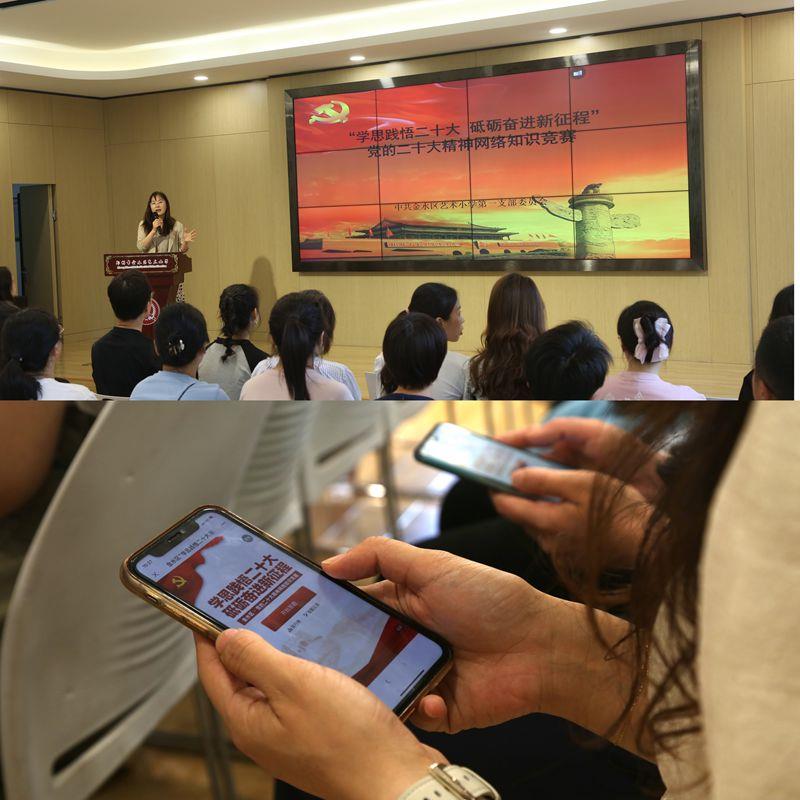 全体党员通过“金水区红色家园”微信公众号,采用线上答题方式,认真参与“学思践悟二十大 砥砺奋进新征程”党的二十大精神网络知识竞赛活动。将知识竞赛作为深入学习宣传贯彻党的二十大精神的有效途径,指导广大党员教师积极参与,不断强化理论基础。