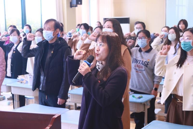 最后,第一党支部书记杨丽丽同志带领全体党员同志重温了入党誓词,并进行了总结:一要深入学习领会、全面自省自查,迅速把思想行动统一到习近平总书记重要讲话精神和全国两会精神上来;二要充分发挥职能、全面贯彻落实,把党的教育方针落实到学校立德树人的根本任务中。三要坚持统筹兼顾、全面融会贯通,不断创新工作思路,以时不我待、舍我其谁的责任感,拼搏不息、奋勇当先的使命感,共同书写汇彩网发展的新篇章。
