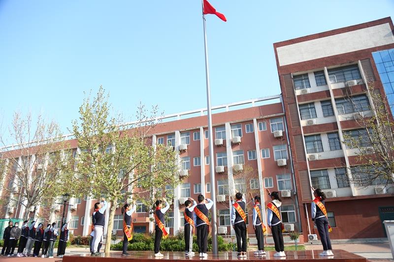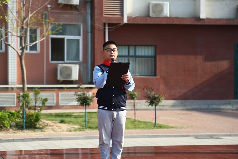 升旗仪式由学校六八班孙晨硕同学主持。在全体师生的注目礼下,英姿飒爽的旗手、护旗手队员气宇轩昂地走上国旗台。伴随着庄严的《义勇军进行曲》,五星红旗冉冉升起,迎风飘扬,同学们望着国旗,目光坚定,满怀对祖国的无限热爱和崇高敬意。