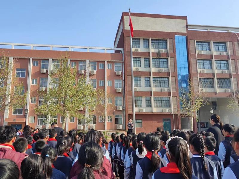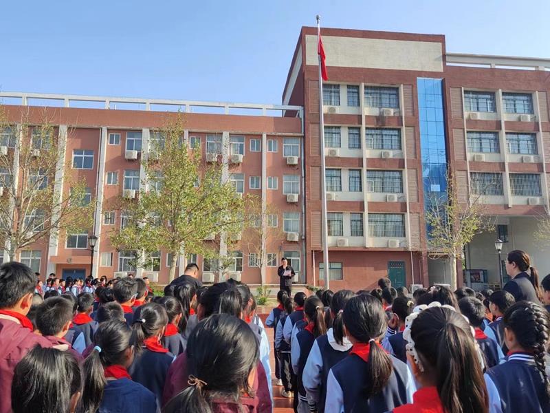 中队辅导员老师胥文杰进行国旗下讲话,他鼓励同学们争做新时代好少年应当遵守校规校纪,养成良好的行为习惯,做一个讲文明、有礼貌、遵守准则的好少年。