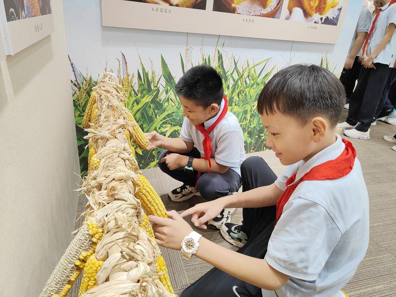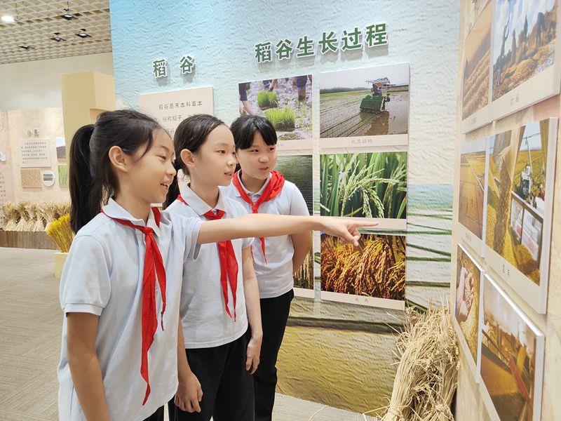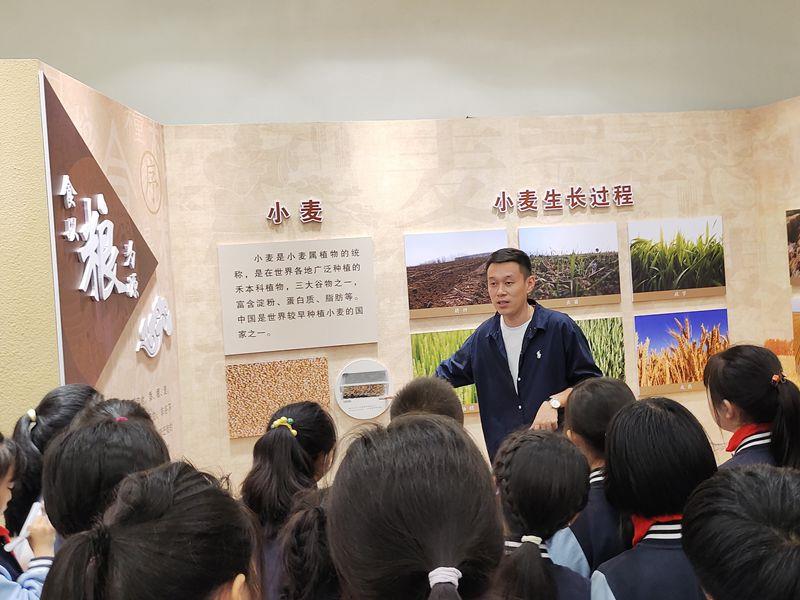 来到宣教馆,同学们观看了粮食生产科普宣传片、聆听了讲解员的介绍,了解了小麦储存及保护设施、粮食的轮换周期、仓库粮食安全、粮食防潮等与粮食息息相关的问题,也明白了农作物的种植需要考虑季节、温度、湿度、肥料、光照等不同因素,体会到农民伯伯播种、收割的艰辛,不禁发出“劳作是个技术活”的感慨。
