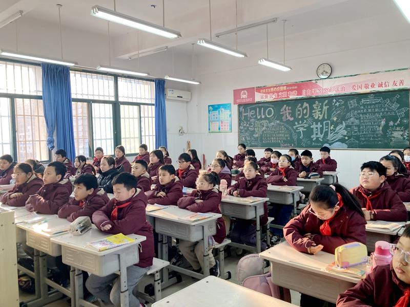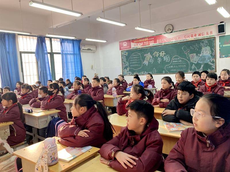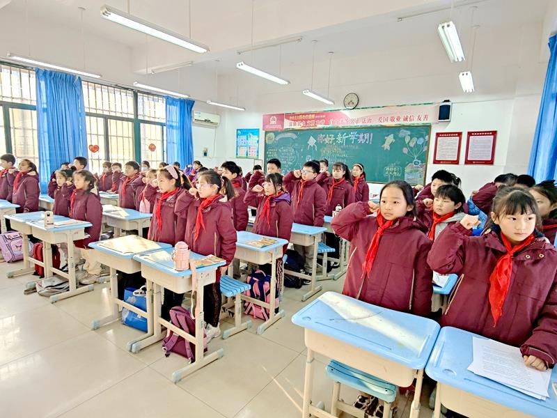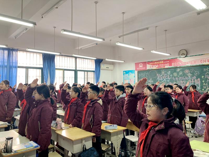 中队辅导员许珂老师发表演讲。她呼吁同学们从日常小事做起,养成热爱劳动、以礼待人、认真听课、勤俭节约的习惯,做一名优秀的小学生,成就更加美好的人生。