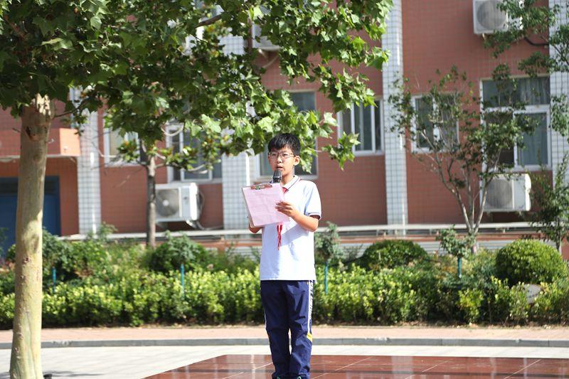 五三班学生代表霍宣铮进行国旗下演讲,他说:校园是我们共同生活的地方,养成良好的卫生习惯,共创美好校园环境,是我们每个同学的责任。