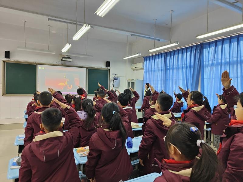 本次升旗仪式由五一中队学生代表卢利恩同学主持。升旗仪式在庄严的国歌声中拉开帷幕,鲜艳的五星红旗在晨光中冉冉升起,迎风飘扬。全体师生肃立致敬,心中充满对祖国的热爱与敬意。