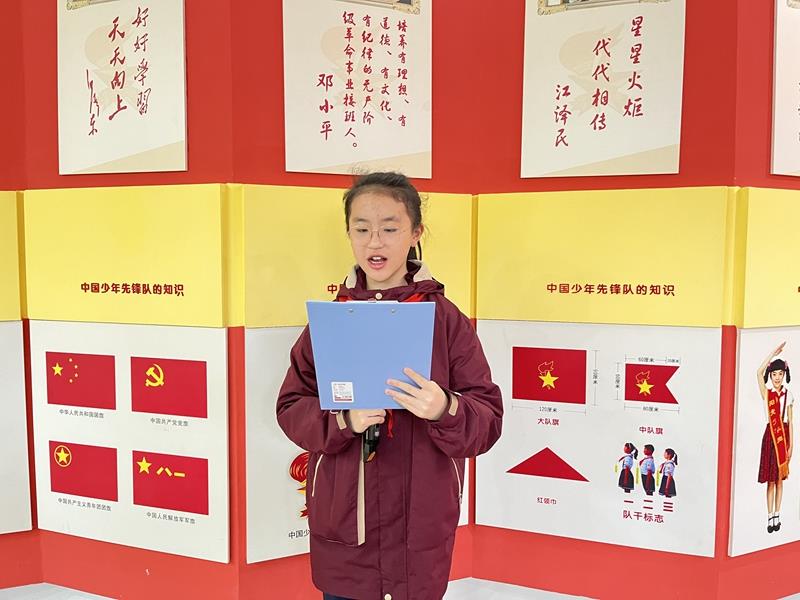五一中队学生代表李雨晗同学在国旗下演讲。她向小伙伴们发出倡议:要与好书为友,与博览同行,享受读书的快乐,享受生活的快乐;多读书、读好书、会读书、勤读书,努力营造书香校园,共创美好明天!