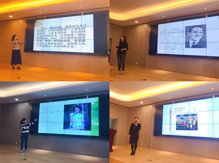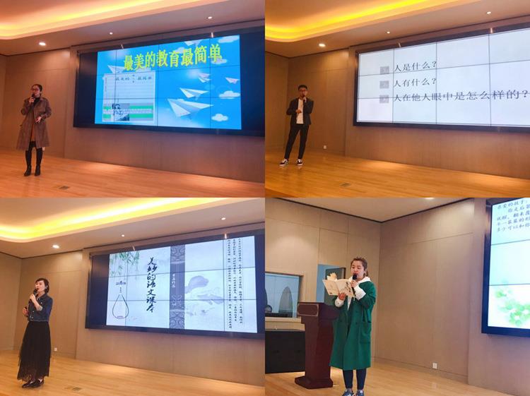 会议的主角是14位年轻教师,他们是学生们喜爱的语文、数学、英语、美术老师,更是学校教育教学的新生力量。围绕“阅读,遇见更好的自己”,老师们从《京华烟云》说到了《岁月的泡沫》、从《最美的教育最简单》说到了《人生的智慧》、从张爱玲说到了黄永玉、从分享古典美文到分享亲子家书……每个人都敞开心扉,分享自己的感悟和成长。一本本经典名著,一个个名家故事,一句句至理名言,从各位青年教师口中娓娓道来,他们或深情温婉、或慷慨激昂、或意气风发、或幽默风趣,不断引发在场教师的情感共鸣,热烈的掌声时时响起。