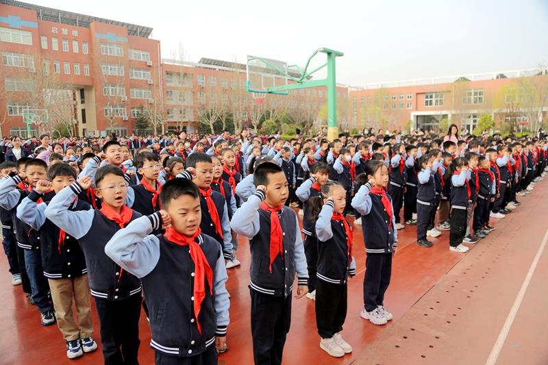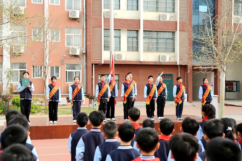 本次升旗仪式由学校六七中队学生代表李雪璐同学主持。早晨的阳光洒满校园,伴随着雄壮激昂的国歌,鲜艳的五星红旗冉冉升起。全校师生面向国旗庄严肃立,少先队员行队礼,齐唱国歌,精神饱满,斗志昂扬。