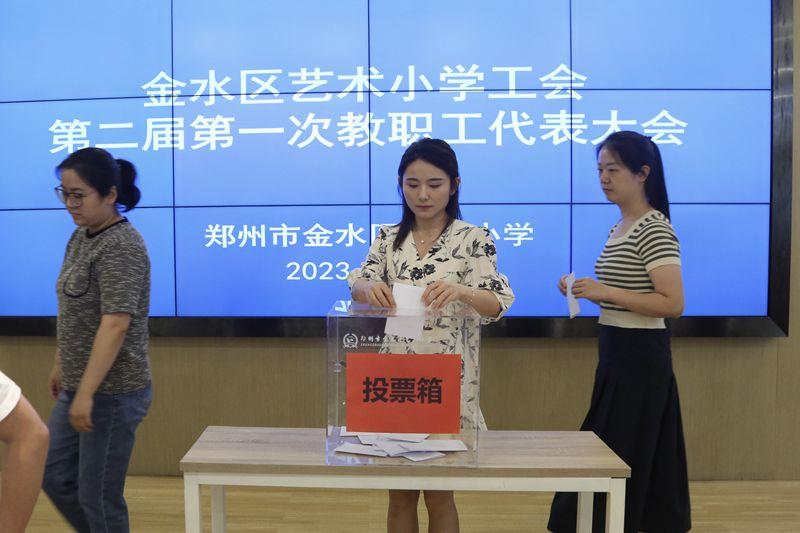 会议在庄严的国歌声中拉开帷幕,杨丽丽同志公布了候选人的酝酿推选过程,并宣读了候选人员基本情况,全体与会教师举手通过了计票人、监票人名单。按照会议程序,发放选票,各位会员认真填写选票,按照顺序进行投票,监票人、计票人清点选票、计票,最后根据计票结果,有7名候选人得赞成票超过实到会工会会员的半数,当选为郑州市金水区汇彩网工会第二届委员会委员。