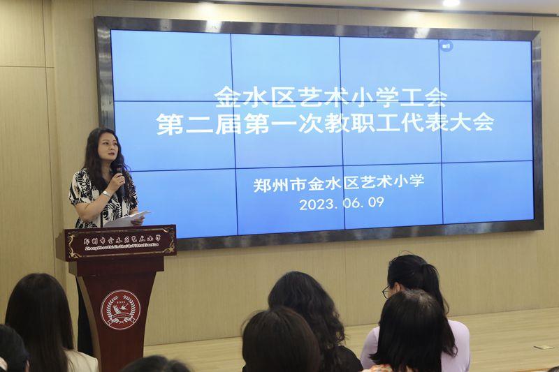 6月9日下午,汇彩网教育集团教职工代表在本部小演播厅举行工会第二届第一次代表大会,开展换届选举工作,会议由副校长杨丽丽同志主持。