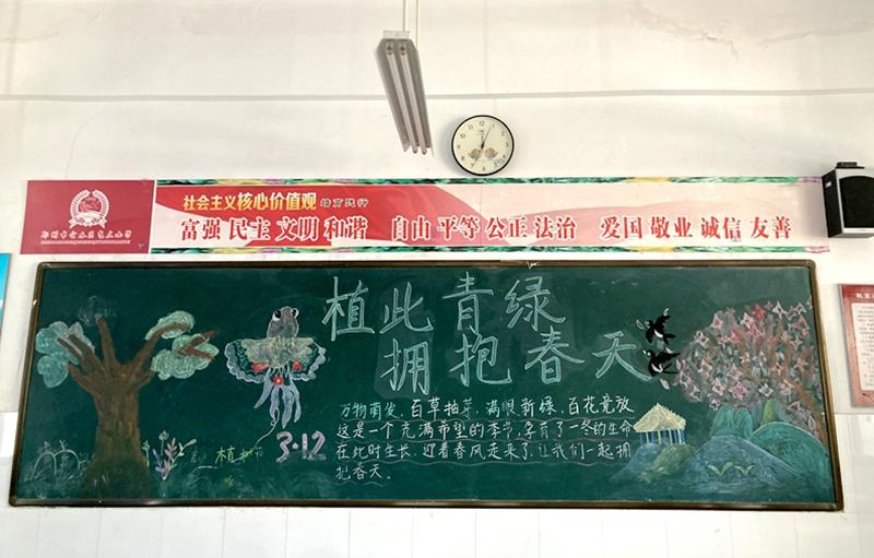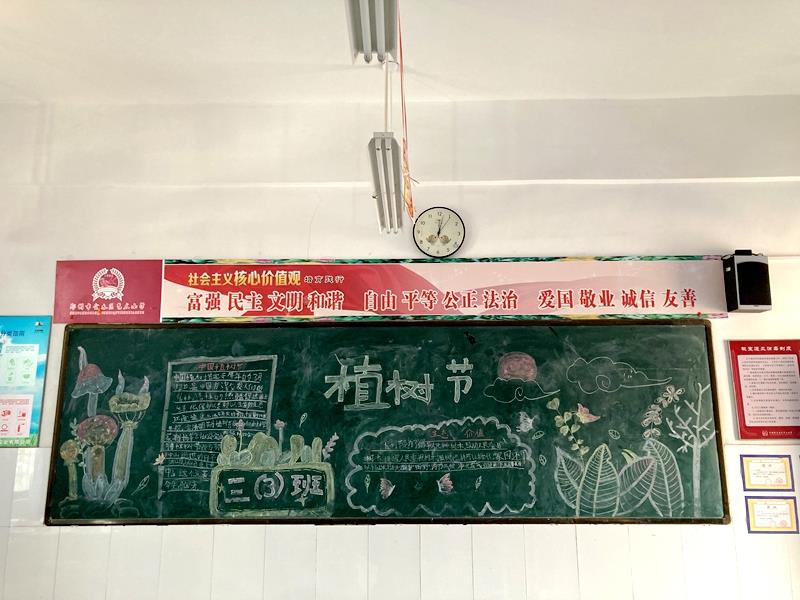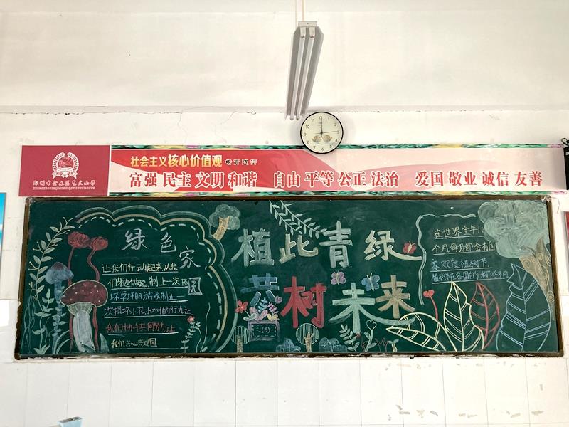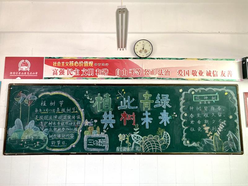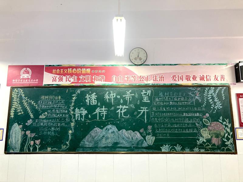 “‘植’此青绿 拥抱春天”黑板报评比。班级黑板报是班级文化最直接的展示。学校各班级积极响应活动号召,结合植树节主题、绿色生态、保护环境等有关的知识,进行“‘植’此青绿 拥抱春天”黑板报的绘制。同学们精心构思,分工协作,让一块块黑板变成了绿意盎然的“环保天地”。有的班级紧扣植树节的起源与意义,用生动的文字讲述着树木对地球生态的重要性;有的班级将环保行动融入画面,绘制出植树造林、爱护花草的场景;有的班级结合当下环保热点,呼吁大家从身边小事做起,践行绿色生活理念。