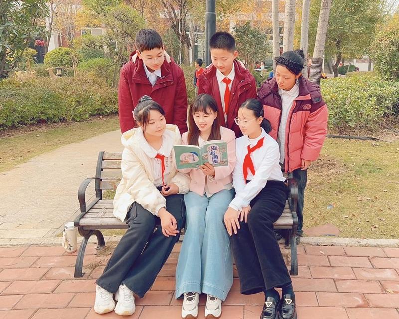 一本书就是一株花卉,花儿们在原野中相逢,而我们正如一朵朵求知若渴的花朵,在六七班这片书香四溢的原野中慢慢绽放。老师是教我们读书的点灯人,在每一个清晨、在每一个午后,用她那优美动听的声音带着大家一起,在书海中感受文字的温度。每一位同学都是热爱阅读的“小书虫”,每一本好书大家都一起分享,每一次交流都能让大家感受到知识的力量。阵阵书香弥漫在我们的班集体里,同学们仿佛一棵棵破土而出的种子,在六七班这片书声琅琅的的原野里,找寻着那个独一无二的自己。