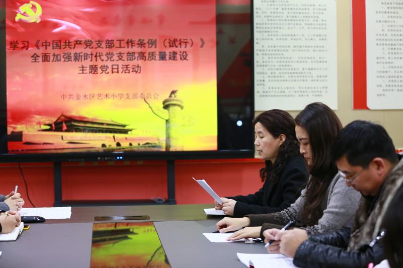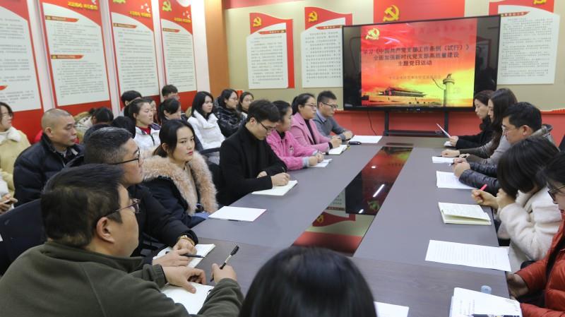 12月20日下午,我校党支部在党员活动室举行学习贯彻《中国共产党支部工作条例(试行)》主题党日活动,三个校区党员教师全体参加。