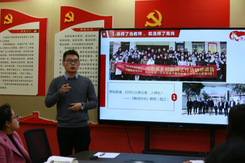 结合《条例》学习,郑磊勇老师给全体党员上了一节生动的微党课,从一名教师的亲身感受,讲述了对于不忘初心、牢记使命、全心全意为人民服务的深刻理解。号召全体党员教师深入学习贯彻十九大报告精神和习近平重要讲话精神,牢固树立“四个意识”,做“四讲四有四牢记”新时代合格党员,时刻以学生健康成长、学校内涵式发展为己任,立足岗位,无私奉献,在奉献中实现价值,为实现中华民族伟大复兴的中国梦努力奋斗!