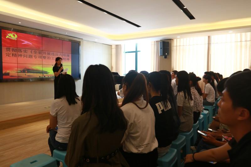 9月11日,学校全体党员教师学习领会《河南省纪委关于印发全省开展违反八项规定精神问题专项政治工作方案的通知》和《全省严明政治纪律和政治规矩开展整治“帮圈文化”专项排查工作方案》精神。