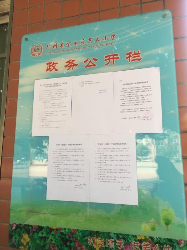赵校长代表学校签订了专项治理承诺书,在学校公告栏中进行公示,并公布举报电话接受社会监督。