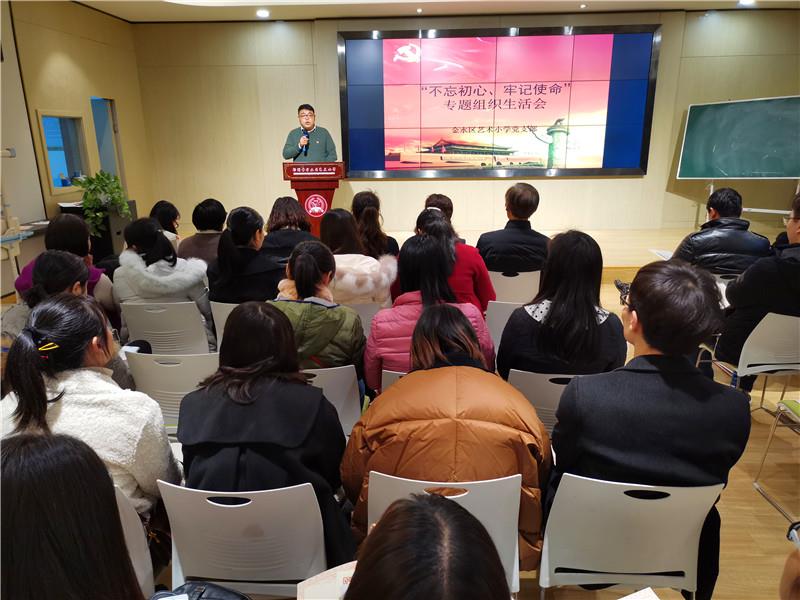 12月6日下午,我校党支部组织三个校区得全体党员在学校报告厅举行“不忘初心、牢记使命”主题教育专题组织生活会和党员民主评议大会。会议由学校党支部副书记郭莹主持。