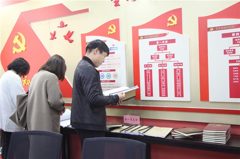 本次活动从强化党建工作氛围、落实党建工作责任,深化主题教育成果完善、学习教育机制,党建融合教育教学、发挥先锋模范作用等四方面对全校四个党支部工作开展情况进行了全面检查。检查中,首先由各党支部对2020年度党建工作开展情况及前期自查情况进行总结汇报;随后观摩团认真翻阅了支部党建档案,调研团对支部党建档案的整理给予了一致好评,档案归档做到了分类有序、内容详实、更替及时。观摩小组进行逐条查阅审核,通过查阅材料并与相关工作人员交流询问,对学校党建工作认真考核。