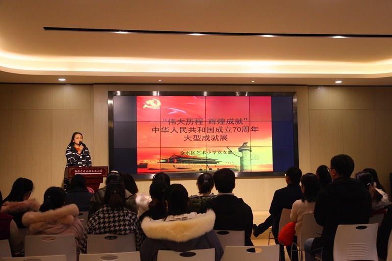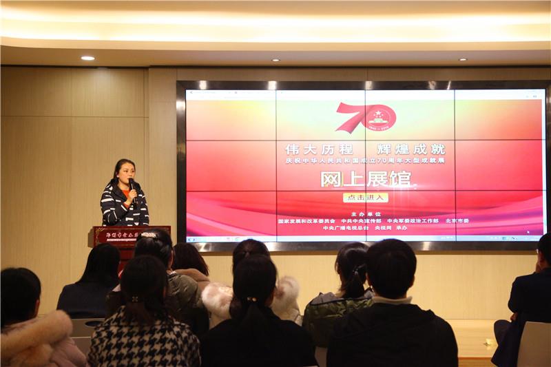 为扎实推进“不忘初心 牢记使命”主题教育活动,切实加强爱国主义教育,弘扬爱国主义精神,11月28日下午,我校党支部组织全体党员在报告厅集中观看“伟大历程 辉煌成就”---庆祝中华人民共和国成立70周年大型成就展网上展馆。