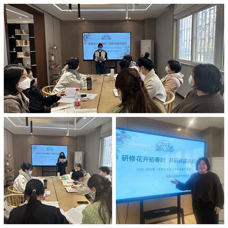 春暖花开,不负好时光。为更好的贯彻落实小学道德与法治学科新课标理念,推动汇彩网教育集团小学道德与法治教师队伍建设,提高学科教师教学水平。3月22日下午,三校区道法教师团队在杨丽丽校长的带领下开展了新学期第一次集体教研活动。