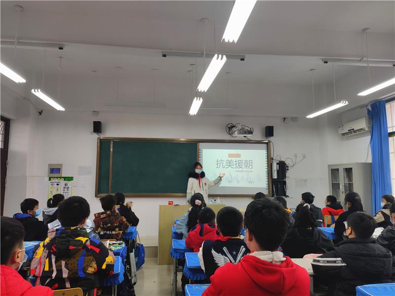 组织学生以班级为单位开展“追寻红色记忆 深植爱国情怀”主题班队会活动,老师利用多媒体、图片、视频、讲故事等多种形式,向学生讲述了抗美援朝战争的时间、背景以及参战的重大意义。组织学生集体诗歌朗诵的形式致敬那场不屈的战争,致敬伟大的革命英雄,孩子们饱含热泪的眼眶里,透露着无限的敬佩与感激。进一步激发了全体师生的爱国主义情怀,使同学们在今后的学习和生活中,能够继承和发扬革命先辈的光荣传统,勇担民族自立、自强的重任,早日成长为德智体美劳全面发展的社会主义事业建设者和接班人。