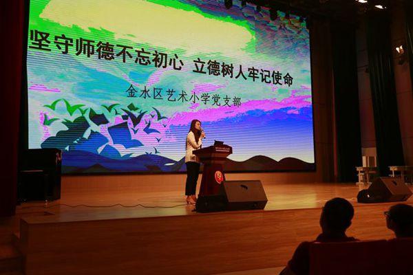 党支部副书记郭莹号召学校全体教师把做令人尊敬的教师作为自己教育事业的追求, 把做好教育教学工作作为安身立命的法宝,对学生有一颗慈母般的仁爱之心,把自己的情感倾注到学生身上,把教书育人当做自己的第一任务,认真踏实的完成自己的本职工作,用自己的言行去感染学生,教会孩子做人做事,做一名新时代优秀教师。学校校长赵纪军也勉励老师们,要牢记教育的初心和使命,在艺小大舞台上充分的展示自己,更快更好的成长,为学校发展贡献力量。