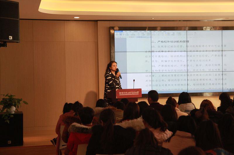 1月21日下午,我校党支部在小演播厅举行“落实立德树人根本任务,促进中小学生健康成长”主题党日活动,三个校区全体教师参加。