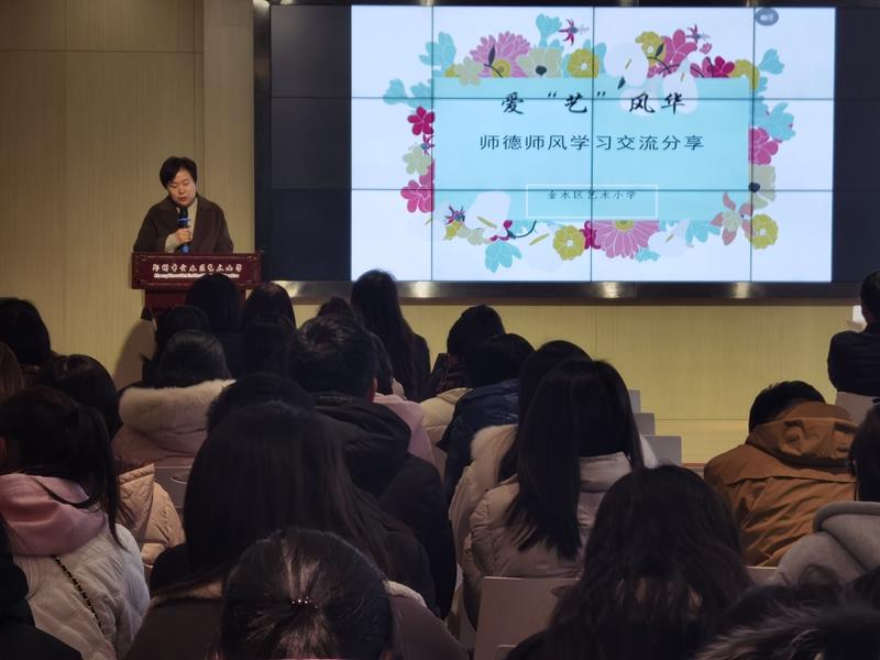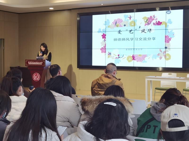 线下的主题教育学习由学校副书记郭莹主持。活动从“爱‘艺’风华”师德经验交流分享开始,邀请优秀教师代表徐喜荣和徐改丽进行分享。两位老师的分享真实、真切、温暖人心,在座的老师都感同身受,学校的艺美教师也正是在平凡的岗位上创造着不平凡的业绩,关爱学生、立德树人是一名教育工作者永恒的使命。