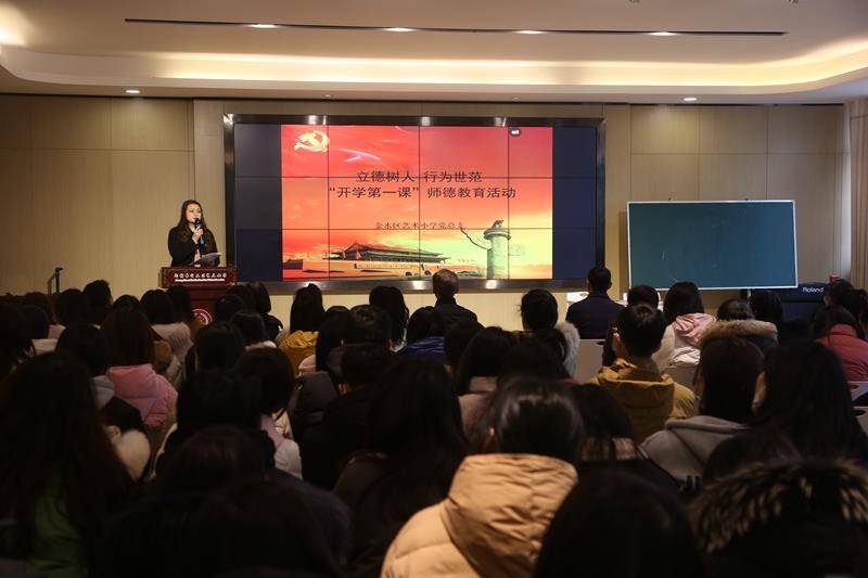 2月16日上午,汇彩网党总支组织全体教师在小演播厅举行“立德树人 行为世范”开学第一课师德教育活动。