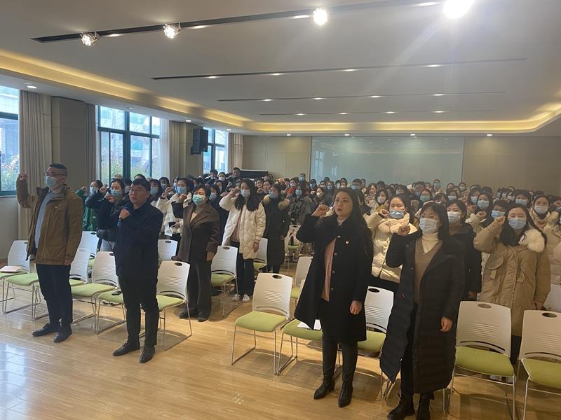 学校副校长韦慧卿作为领誓人,带领全体教师重温人民教师誓词,坚定举起的右手承载着时代赋予教师的重任,也表达了教师坚定的信念,为党育人、为国育才。