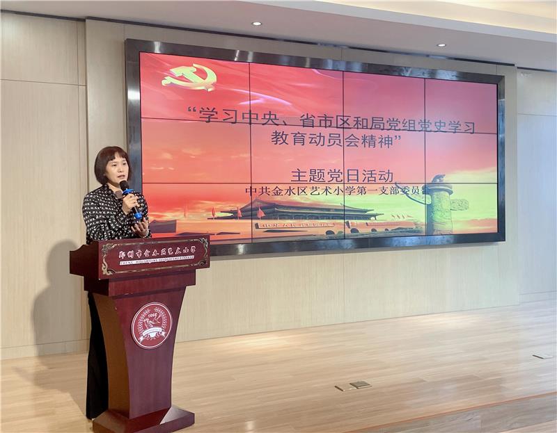 活动伊始,支部书记杨丽丽先组织全体党员教师学习中央、省市区和局党组党史学习教育动员会精神。她强调开展党史学习教育,就要认真学习贯彻习近平总书记重要讲话精神,突出重点,明确要求,务求实效,从党的百年伟大奋斗历程中汲取继续前进的智慧和力量。