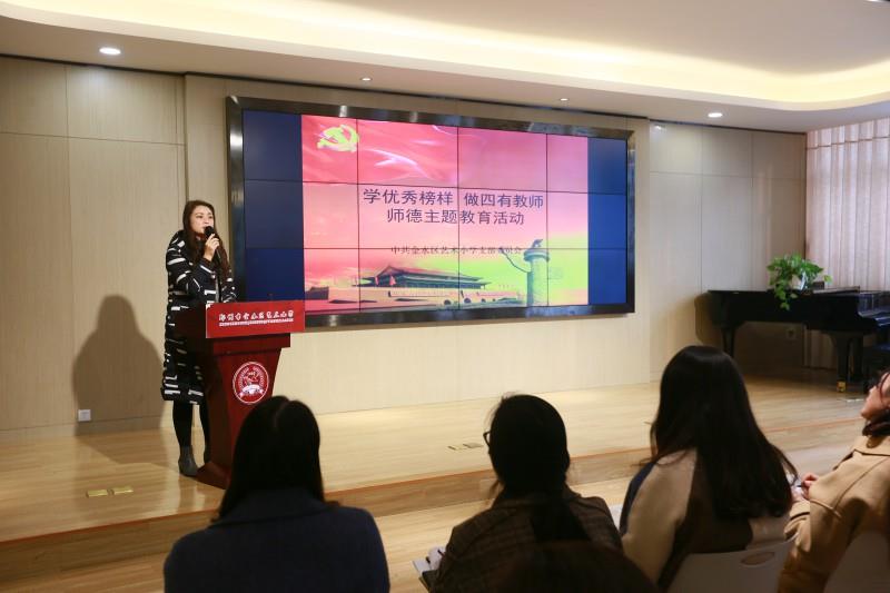 活动中,两位师德先进个人王瑶老师和高晶晶老师给全体教师分享了自己的从教经历和感想感受。作为入党积极分子的王瑶老师参加过周口支教,在日常工作中也是拼命三郎的作风,用自己的辛勤付出赢得了学生和学校的一致好评;音乐老师高晶晶不顾自己的身体病痛,坚持坚持再坚持,用自己的专业素养为学生们上好课,从没有耽误过社团训练和演出。听了两位老师的分享,在座的老师们都感同身受,她们的故事就是教师工作和生活的写照,关爱学生、立德树人是每一名教育工作者的追求,对学生有一颗慈母般的仁爱之心,用自己的言行去感染学生,成为学生心目中的好老师,就是作为教师最朴素的价值追求。
