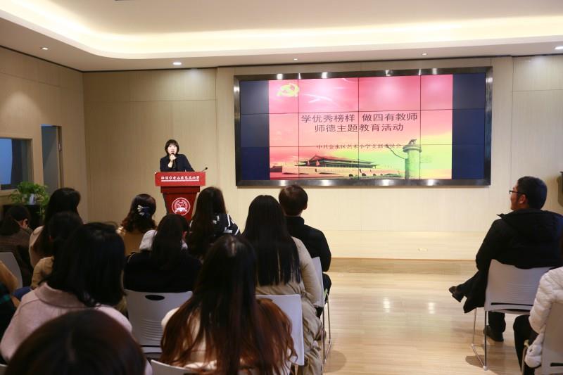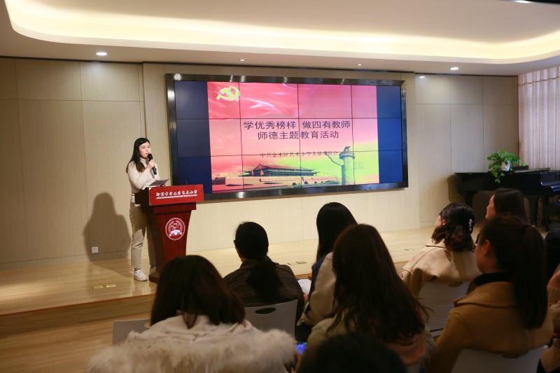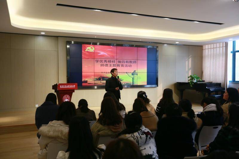 2月25日下午,我校全体教师在学校小演播厅开展“学优秀榜样 做四有教师”师德主题教育活动。