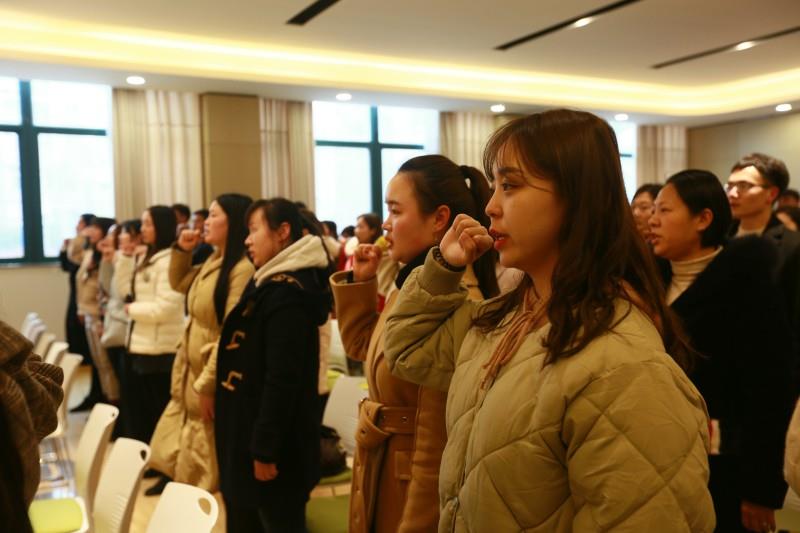 最后,全体教师起立,庄严的举起右手,共同重温了人民教师誓词,做到“有理想信念、有道德情操、有扎实学识、有仁爱之心”。