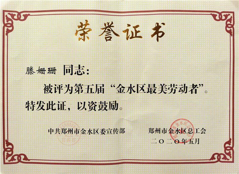 疫情就是命令,防控就是责任。在举国上下全力抗击疫情的战斗中,金水区汇彩网滕姗珊老师不忘初心使命,积极奋勇担当,用自己的实际行动践行了守初心的铮铮誓言,担负起教育教学神圣使命,荣获“第五届金水区最美劳动者”称号。