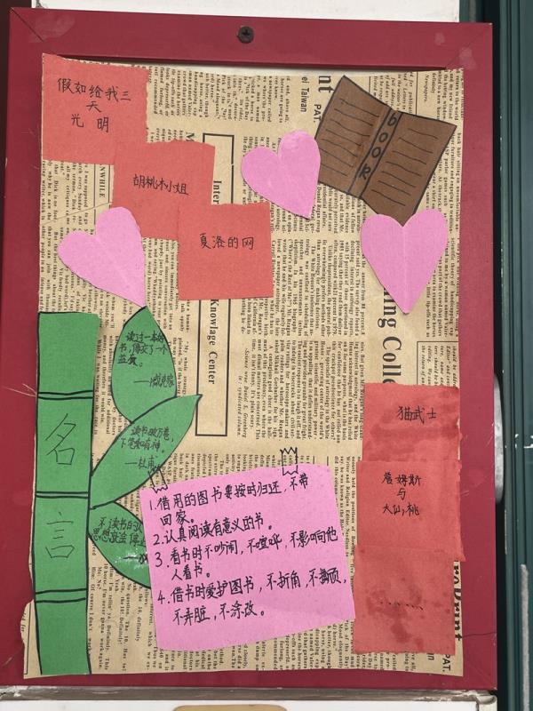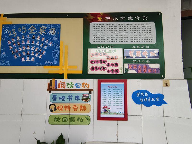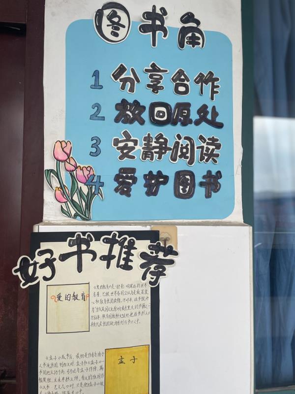 经过师生的共同努力,学校每间教室的门口都散发着浓浓的书的芬芳:有彩纸贴出的花花草草,有口号响亮的“班级读书公约”,有一本本整齐编码的书籍……可谓是“小角落”见“大天地”!