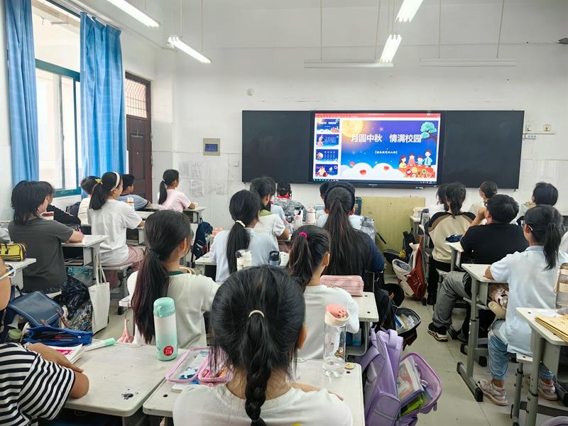 活动中,班主任老师首先向同学们介绍了中秋节的来历--中秋节以月之圆兆人之团圆,为寄托思念故乡、思念亲人之情,祈盼丰收、幸福,成为丰富多彩、弥足珍贵的文化遗产,接着,依托多媒体课件,介绍了中秋习俗,诸如拜月、燃灯、赏月、追月、吃月饼、猜灯谜等,让学生进一步了解了传统节日,感受到传统文化的魅力;最后,还分享了《嫦娥奔月》、《吴刚伐桂》、《玉兔捣药》等中国神话传说,同学们听得津津有味,奇妙的神话故事仿佛诱人的画卷,展现在同学们面前,让他们对中秋节文化有了更深的了解。活动使同学们明白了“中秋节”这一传统习俗,不仅代表了中国人民对美好生活的向往,也承载着对家庭团聚和亲情的渴望,还深刻意识到传统文化应该得到传承和发扬。