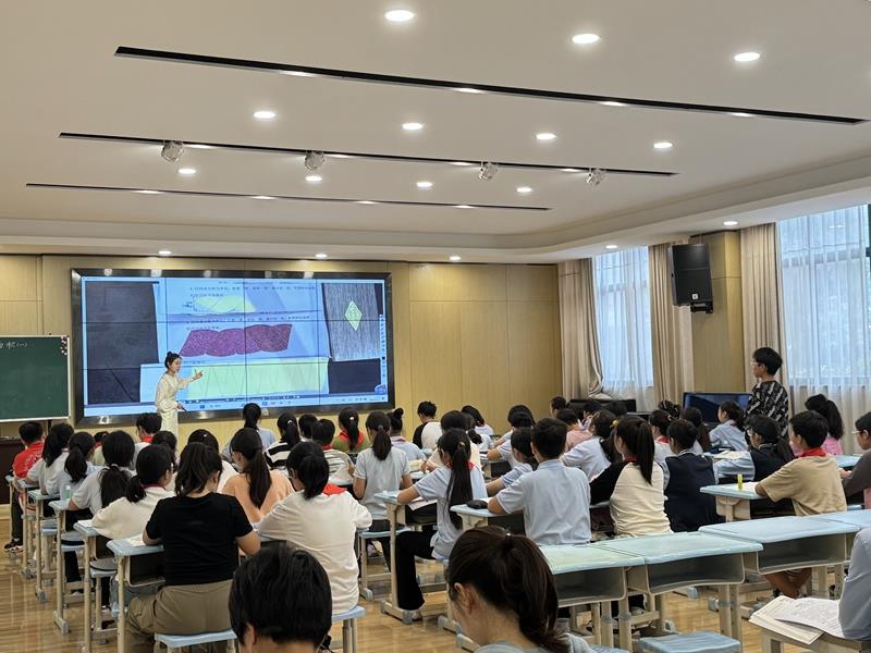 活动第一环节是由姚水丽老师带来的一节六年级课程《圆的面积(一)》。姚老师通过城市绿化这一主题引出计算圆形花坛面积,进而让学生思考圆的面积计算方法,这一贴近生活、联系实事的活动很快吸引了学生的学习兴趣,同时又体现了“数学从生活中来”的理念,使学生充分感受数学和生活的密切联系,体会到数学的价值。通过知识迁移、动手操作、同桌讨论、展示汇报等一系列活动,学生突破了本课的重难点,思维的火花被点燃,孩子们真正成为了课堂的主人。最后,又落脚到用面积公式解决生活中的数学问题,使数学又回到生活中去,再次体现了数学学习与生活的密切联系。