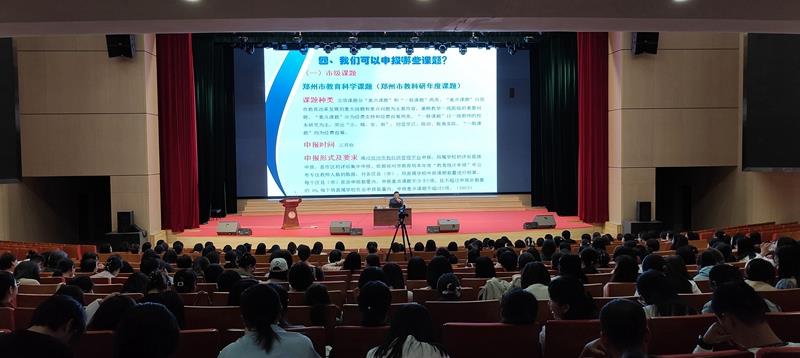 课题研究是提高学校教育教学质量的关键,也是教师专业发展的必要途径。为了更好地提升教师的科研意识,提高教育科学研究的质量与水平,10月17日下午,汇彩网特邀郑州市教育科学研究所副所长王旸到校进行“中小学课题研究专项培训”的主题讲座,本次活动有学校副校长杨丽丽主持,汇彩网教育集团三校区的领导班子和全体教师全程参加了此次活动。