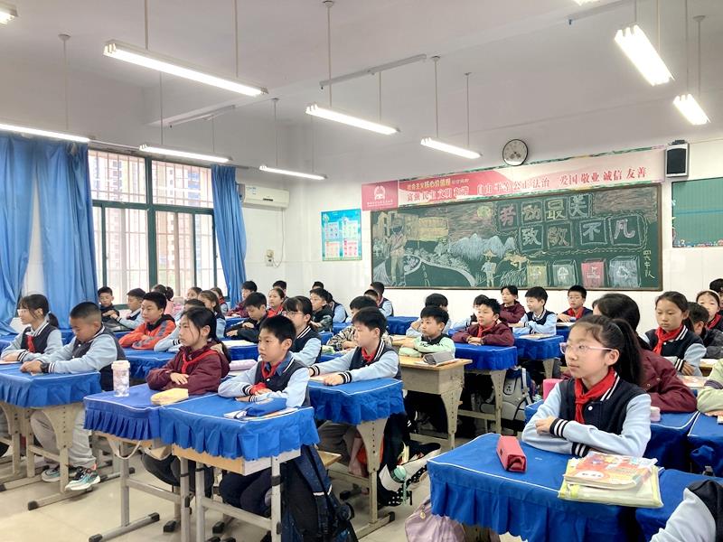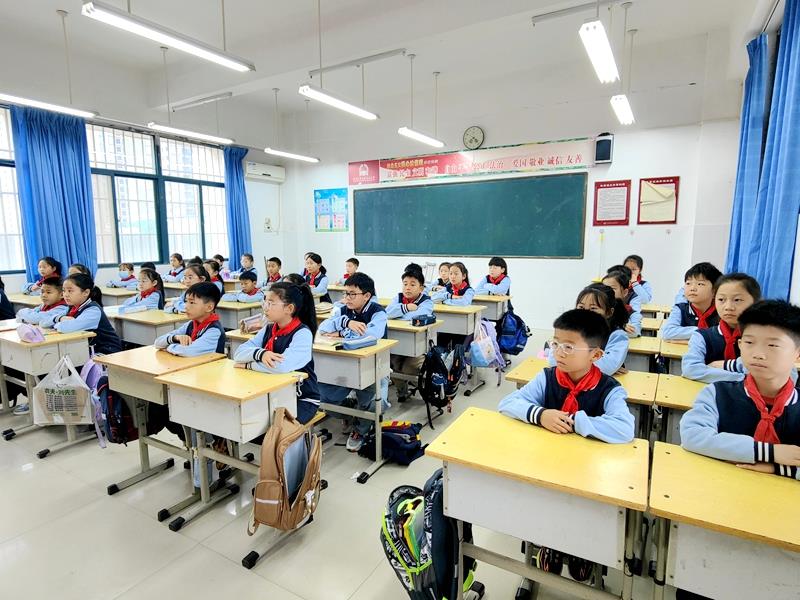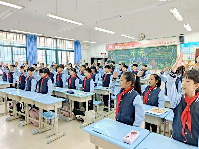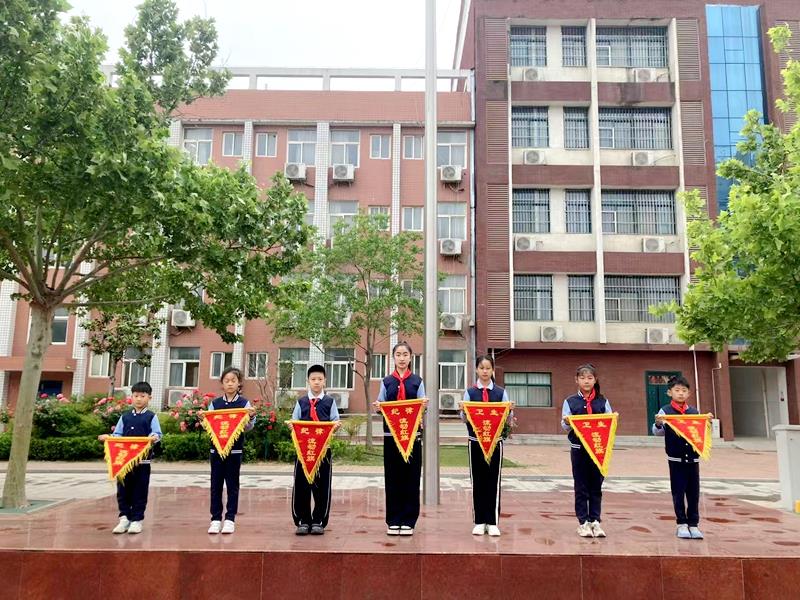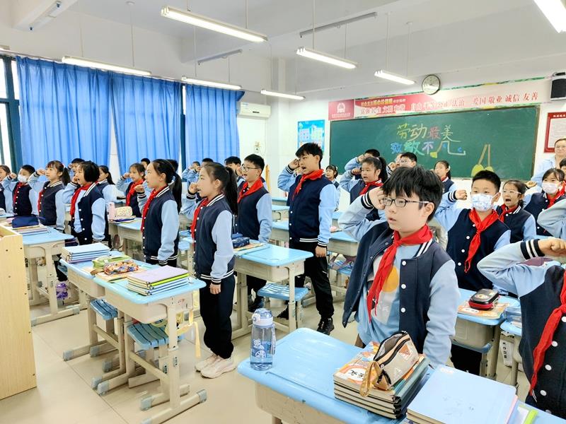 本次升旗仪式由五三中队学生代表贺子轩同学主持。伴随着庄严的国歌声,五星红旗冉冉升起,全体师生庄严肃立、向国旗行注目礼,少先队员行队礼,表达对祖国深深的敬意。
