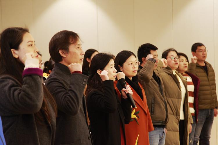首先,全体党员教师在党支部书记常秀丽的带领下,举起右拳,重温党的誓词,脑海中重现曾经入党时宣誓的情景。
