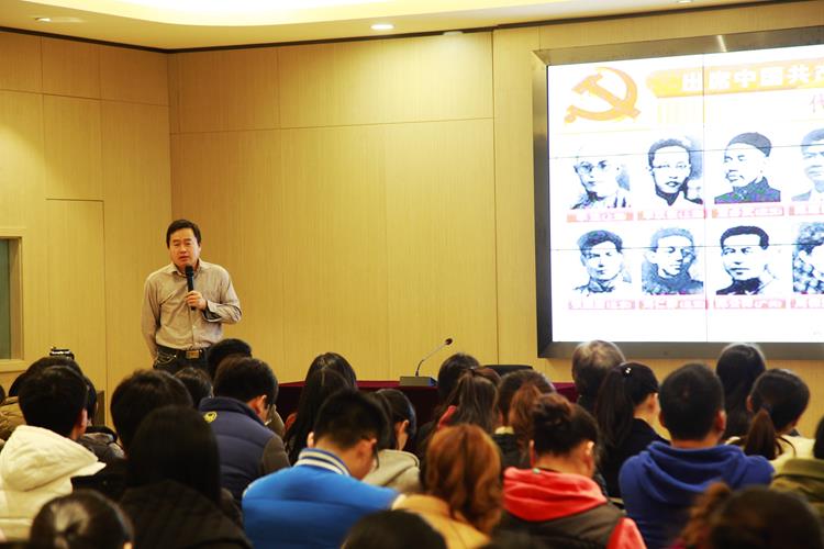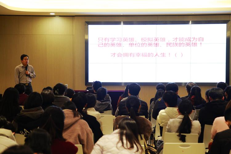 接着,由河南省委党校的李银涛老师为全体老师做了党史教育主题报告。报告从中国共产党发展的各个阶段、民族英雄的定义等几个方面讲述了党的“为人民服务”精神的传承。李老师从中国共产党第一次代表大会中代表们的经历讲起,让我们感受到党员身上特有的精神;进而延伸到“核潜艇之父”黄旭华和“现代愚公”黄大发,他们用自己的行动践行了党员的职责;随后,李老师从基层出发,阐述了每一位普通党员如何在自己的工作岗位上成就英雄。