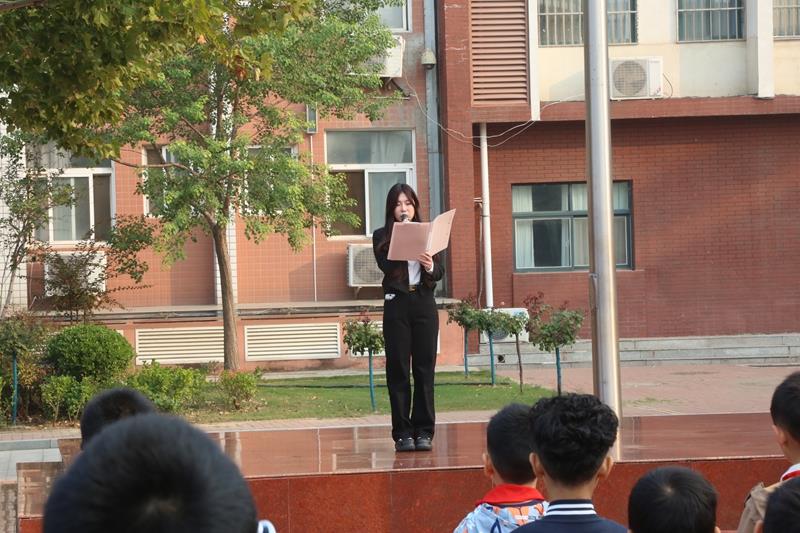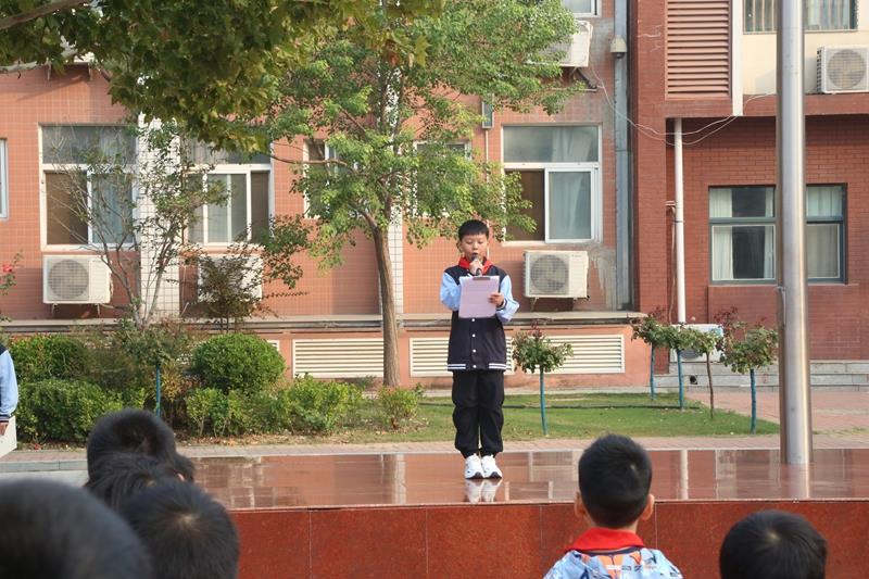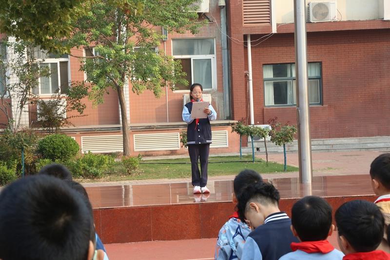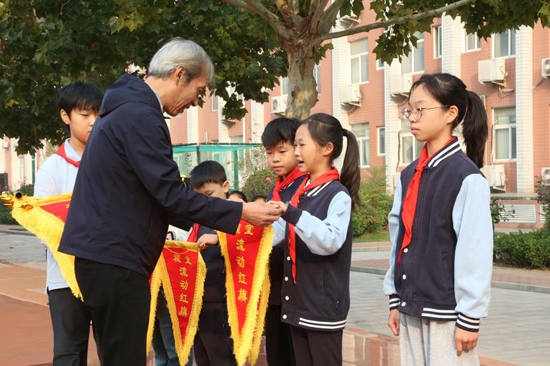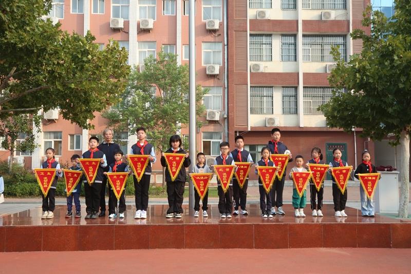 学校少先队大队委师睿哲同学宣读上周获得流动红旗的班级。通过颁发流动红旗,以榜样的力量带动全校同学规范行为习惯,培养良好的道德品质和文明礼仪,增强集体荣誉感。
