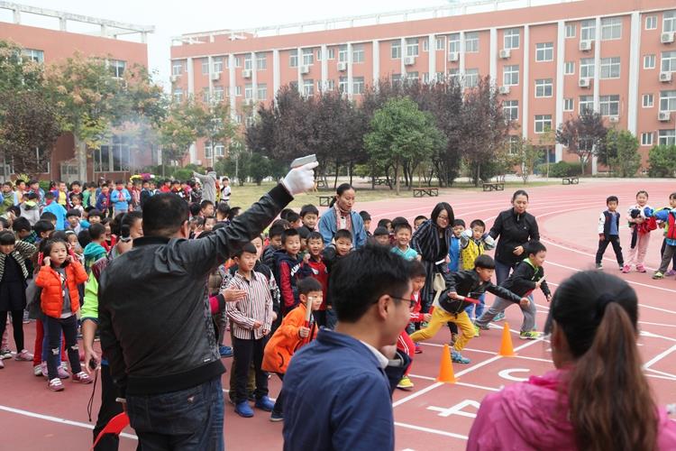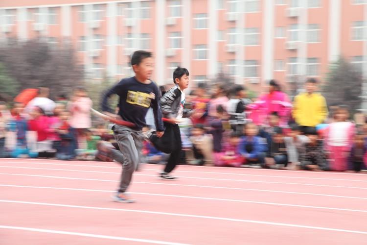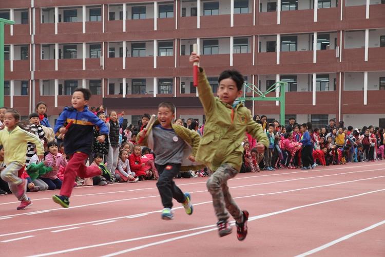 蓝天、绿地、阳光,校园的每个角落都充满着运动的气息。上午8:30,全校师生齐聚操场,比赛按年级分组,每个班级挑选出40名选手。比赛开始了,小运动员听指令迅速起跑,用最快的速度将接力棒交给对面队友。在高亢地呐喊助威声中,接力棒在他们的手中传递出了集体的荣誉、快乐的童年和生命的力量。