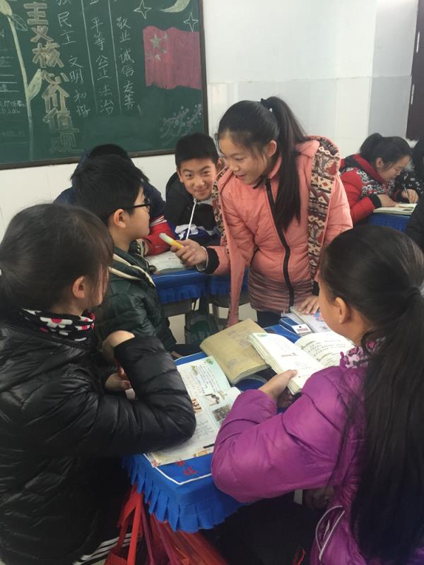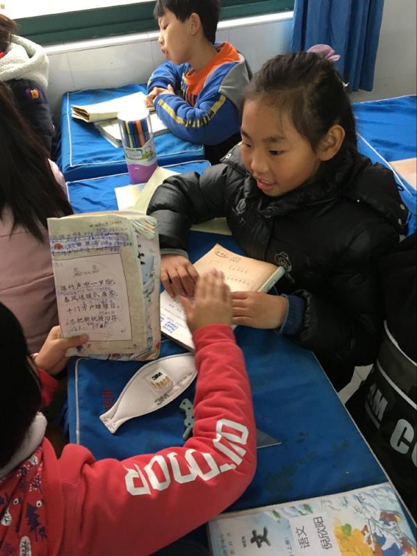 活动采取同桌互背,组长抽查的方式,将学生分为4人小组进行背诵和检查。背诵过程中,班级学生热情高涨,高昂的读书声、背书声回荡在整个教室。背诵的学生认真严肃,组长的检查意思不苟。碰到错误的地方,细心的组长还会用铅笔圈出,并在背诵结束后及时提醒。