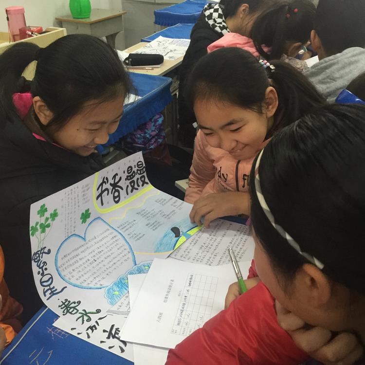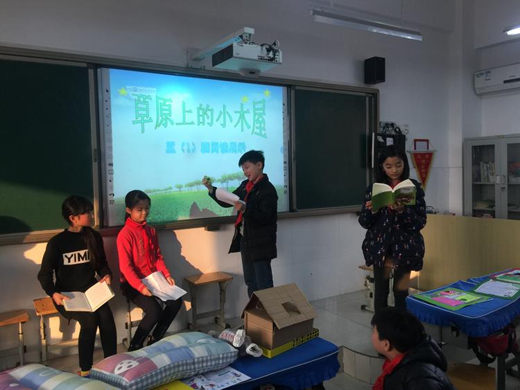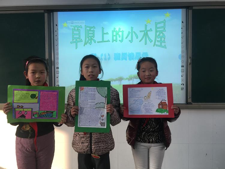 激发学生的阅读兴趣,提高学生的阅读质量是我们高年级语文教学的追求目标。在这一学期中,我们班以自由选读书籍和共读一本书相结合的方式鼓励同学广泛阅读。为了评价学生的课外阅读的学习情况,我们班在12月15日开展了“展示自我 快乐阅读”的阶段性评价活动。本次的评价以共读书籍《草原上的小木屋》为依托,学生们可以根据自己的特长和对本书的理解,选择自己喜欢的方式展示自己的阅读情况。在这次评价活动中,徐雯玥等同学选取了书中的一个小片段,将其改编成剧本,精心排演成了课本剧。徐衡和高一粟用废旧材料制作了小木屋的模型,不但小木屋精致,小木屋的主人也形象地出现在了模型上。吕浩宇是个爱读书又细心的孩子,他发现书的封皮下的硬纸页是空白,就根据书中的情节设计了书的第二个封皮,非常有创意。还有一些同学将自己的摘抄和心得制作成了精美的手抄报。这次评价活动,同学们积极参与,非常喜爱,他们的奇思妙想和才能令大家大开眼界。这次评价不但对学生这段时间的阅读情况进行了展示和总结,也激发了学生积极投入下一本书籍的兴趣,为学生充分感受到了阅读的乐趣。