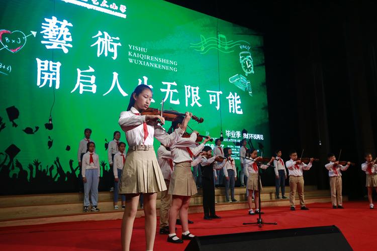学校在坚持学科均衡发展的基础上,为全校学生开设艺术类专业课程,纳入课程表系统开展,独具艺术特色的校本课程与国家课程相得益彰。每一个孩子入学之初,自主选择一门与自身兴趣和特点相适切的艺术课程,并在之后的六年学习生活中系统学习、一以贯之。音乐专业课包含民族器乐类、西洋管乐类、西洋弦乐类等四大类25门课程;美术专业课包含线描、素描、速写、版画、手工、书法等7大类专业课程。聘请了省内艺术院团、院校的专家来校任教,使学生接受规范、循序渐进的艺术专业训练。此外,学校每年组织学生开展多种社会实践活动课程,丰富学生生活,促进学生全面发展。