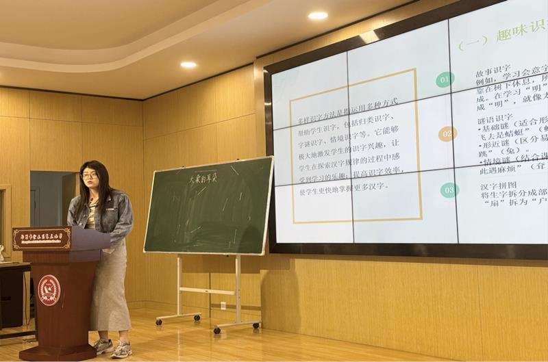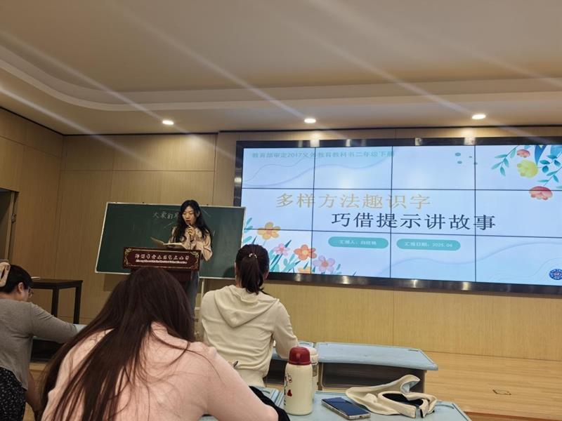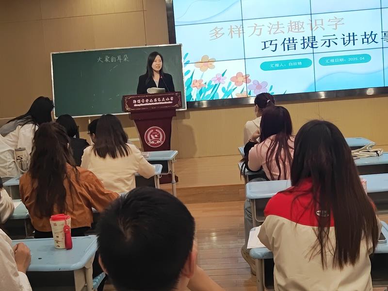 课后,二年级教研组教师代表白欣艳围绕低年级识字教学进行了深入的专题汇报。她结合秦老师的课例,立足于新课标的要求和低年级学生的学习特点,总结了多种寓教于乐、富有创意的识字方法和教学策略。